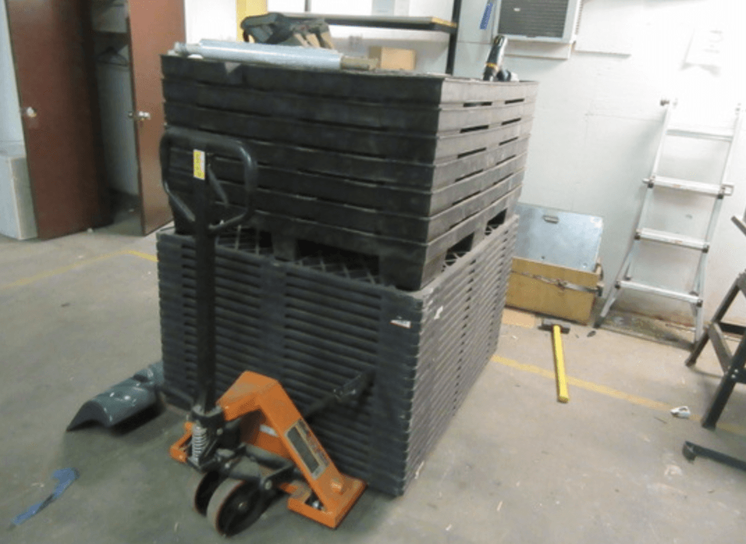 5 SECT. H.D. PALLET RACKING, PALLET JACK, 4' X 4' PLATFORM SCALE, OFFICE FURNITURE, DESKS, CHAIRS, FILE CABS, CONFERENCE TABLE, IMAC COMPUTER, TIME CLOCK SAFE, MORE...