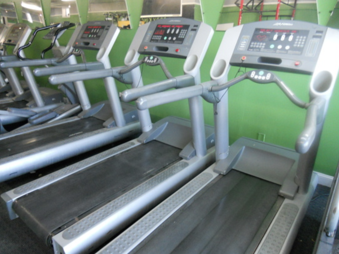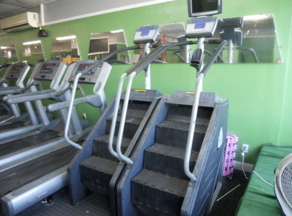 CARDIO EQUIPMENT FEATURING 5) LIFE FITNESS TREADMILLS, 2) STAIRMASTER STAIR CLIMBERS, STAIRMASTER FREE CLIMBER, 4) PRECOR ELLIPTICAL MACHINES, CONCEPT 2 ROWING MACHINE, ASSAULT STATIONARY FAN BIKE, LIFE FITNESS RECUMBENT BIKE,