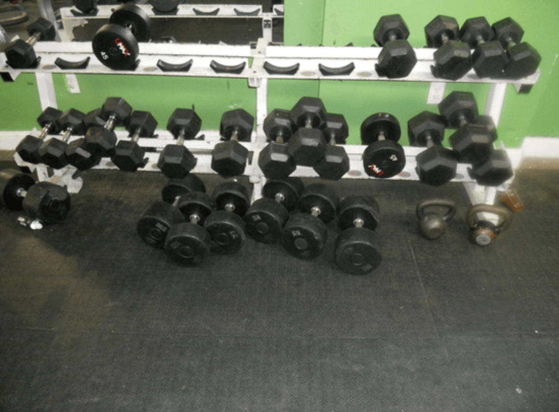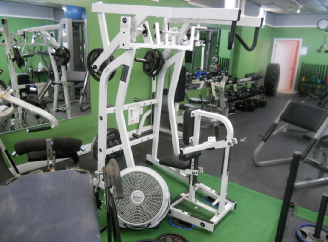 WEIGHT TRAINING EQUIPMENT INCLUDING LIFE FITNESS UNIVERSAL MACHINE, HAMMER STRENGTH ISO LATERAL HI ROW, ODIN WEIGHT STATION, 2) CYBEX 4 STATION UNITS, 30) ASST. LIFE FITNESS, HAMMER STRENGTH & CYBEX WEIGHT TRAINING MACHINES & BENCHES, 5000 LBS. FREE WEIGHTS, DUMBELLS, RACKS, 1000 SQ. FT. RUBBER MATTING, 1 DR. BEVERAGE REFRIGERATON, FANS, ETC.