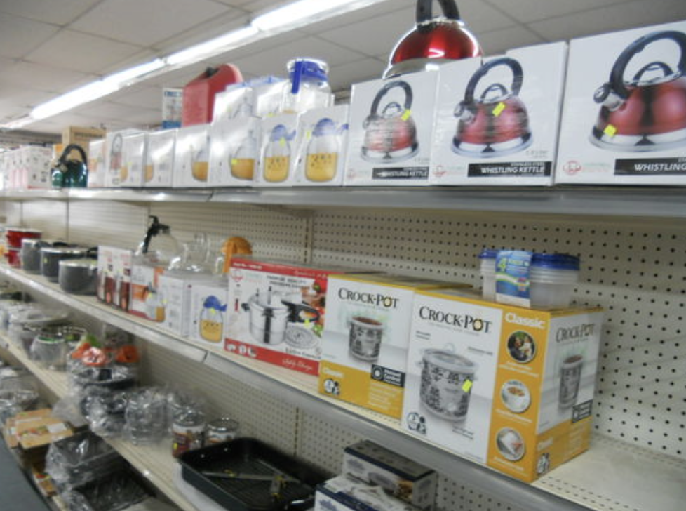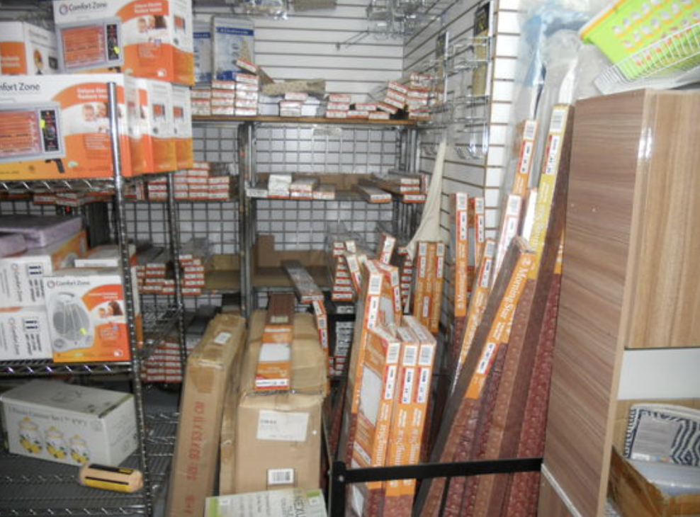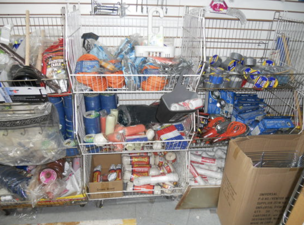 LARGE UP TO THE MINUTE INVENTORY INCLUDING KITCHEN CERAMICWARES, CURTAINS, COMFORTERS, SHEET SETS, RUGS, CURTAIN RODS, TOILET SEATS, OCCASIONAL FURNITURE, TOWELS, KITCHEN LINENS, PLASTIC WARES, STICK ON FLOOR TILE, MINI BLINDS, WINDOW SHADES, HEATERS, FANS, POTS, PANS, KITCHENWARES, GLASSWARE, SMALL APPLIANCES, CLEANERS, HARDWARE, LOCKS, NAILS, SCREWS, ELECTRICAL SUPPLIES, LIGHT BULBS, SHOVELS, GARDEN SUPPLIES, CONTRACTOR BAGS, CASE GOODS, MORE...