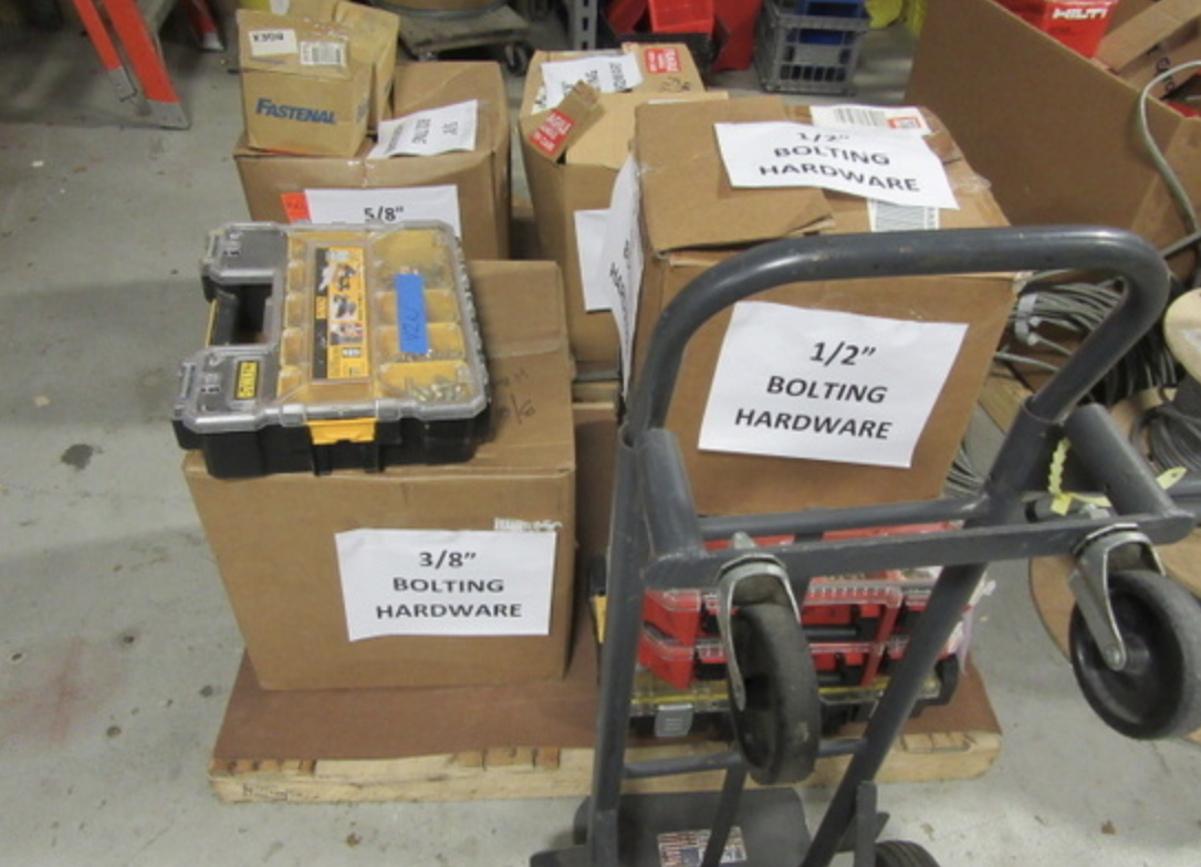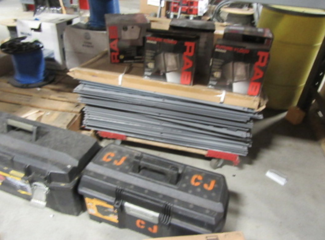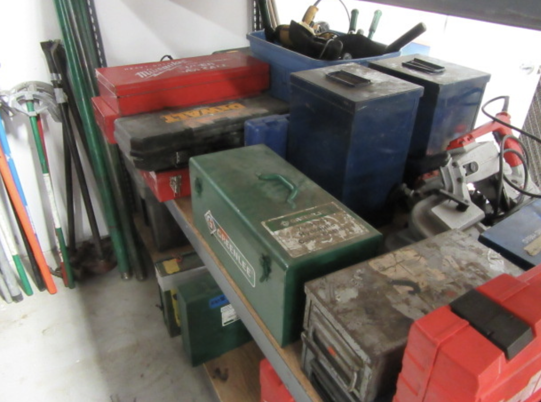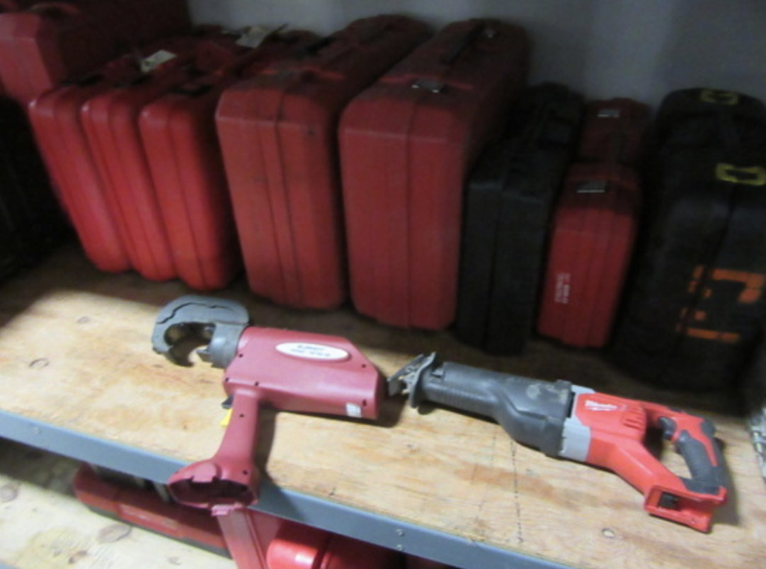 FEATURING LARGE QUANTITY TOOLS INCL. HILTI, GREENLEE, MILWAUKEE POWER TOOLS, HI VOLTAGE INSULATED TOOLS, BENDERS, GANG BOXES, POWER CRIMPERS, DRILL PRESS, GRINDER, WIRE & CABLE, ELECTRICAL FITTINGS & CONNECTORS, ELBOWS, CONDUIT, PIPE, TREMENDOUS QUANTITY HARDWARE, MOUNTING HARDWARE, LADDERS, WESCO ELECTRIC LIFT, PALLET JACK, METRO SHELVING, PARTS BINS, EXEC OFFICE FURNITURE, CONFERENCE TABLE & CHAIRS, CCTV SYSTEM W/ 12 CAMERAS, TV, MUCH MORE...