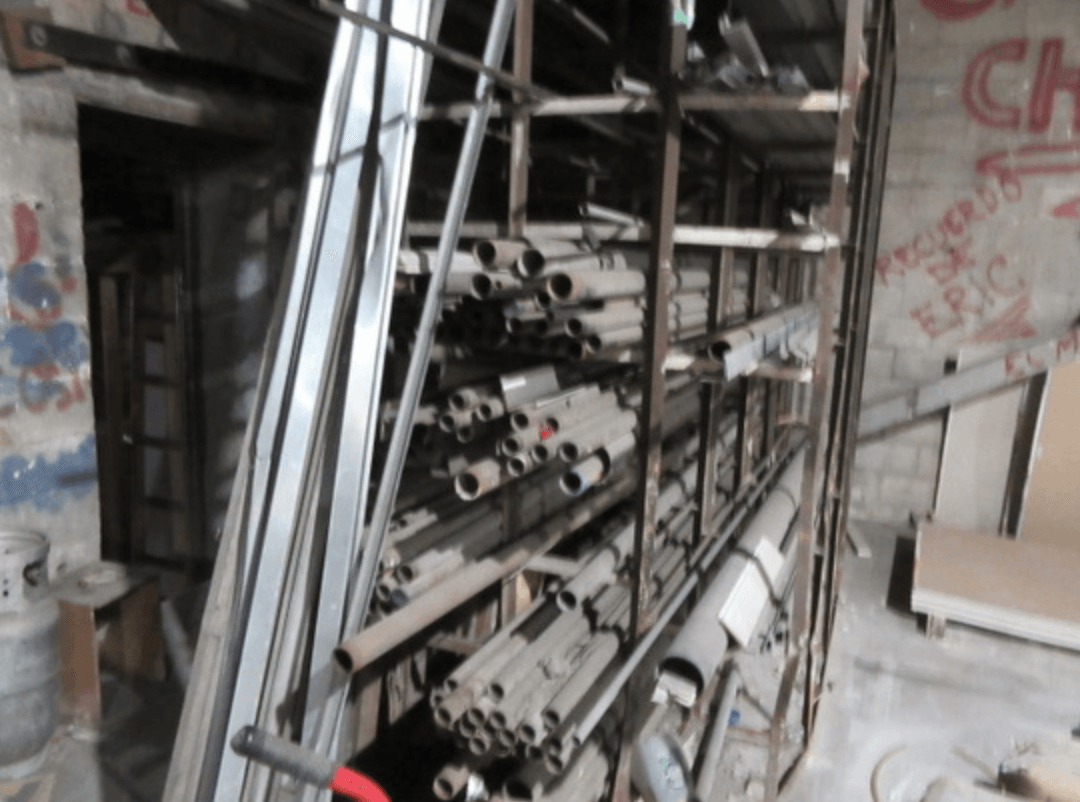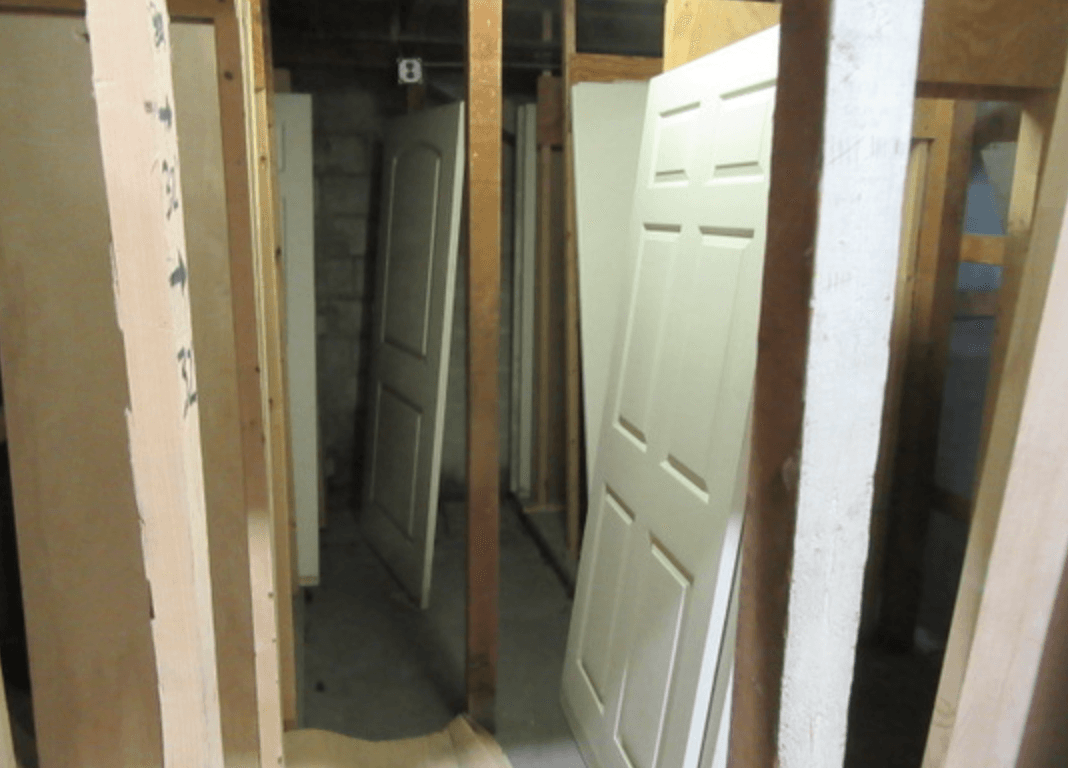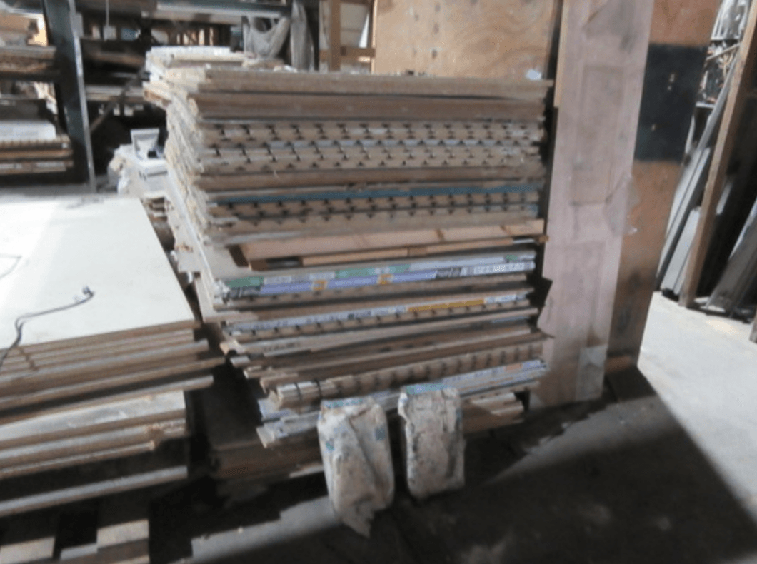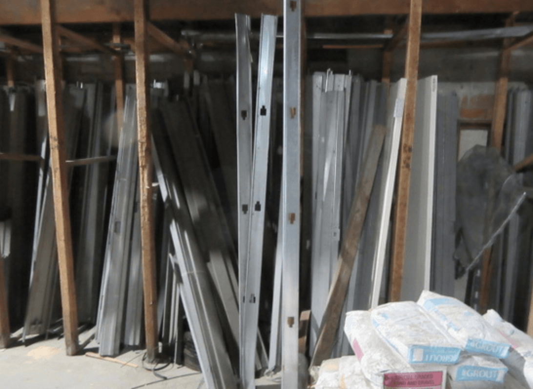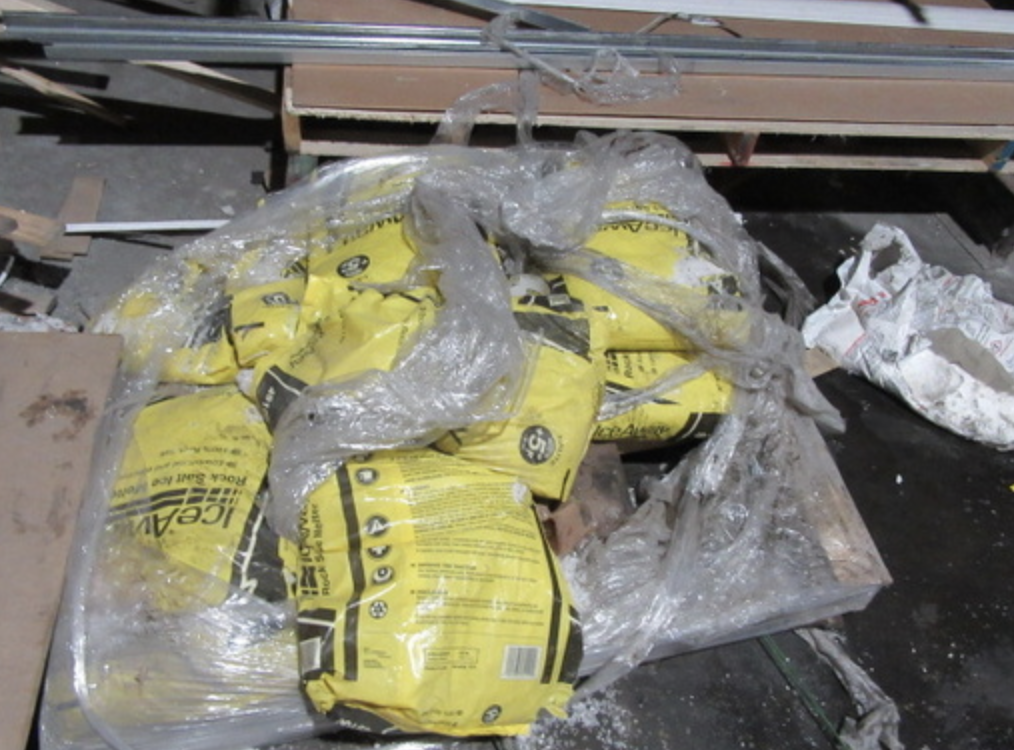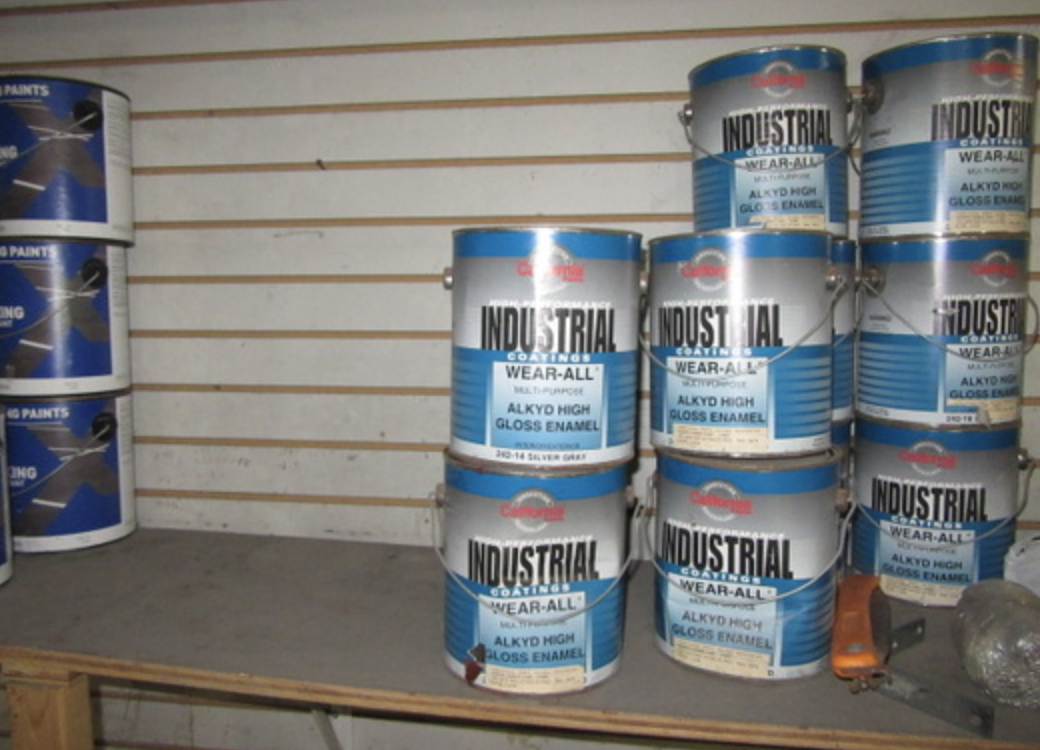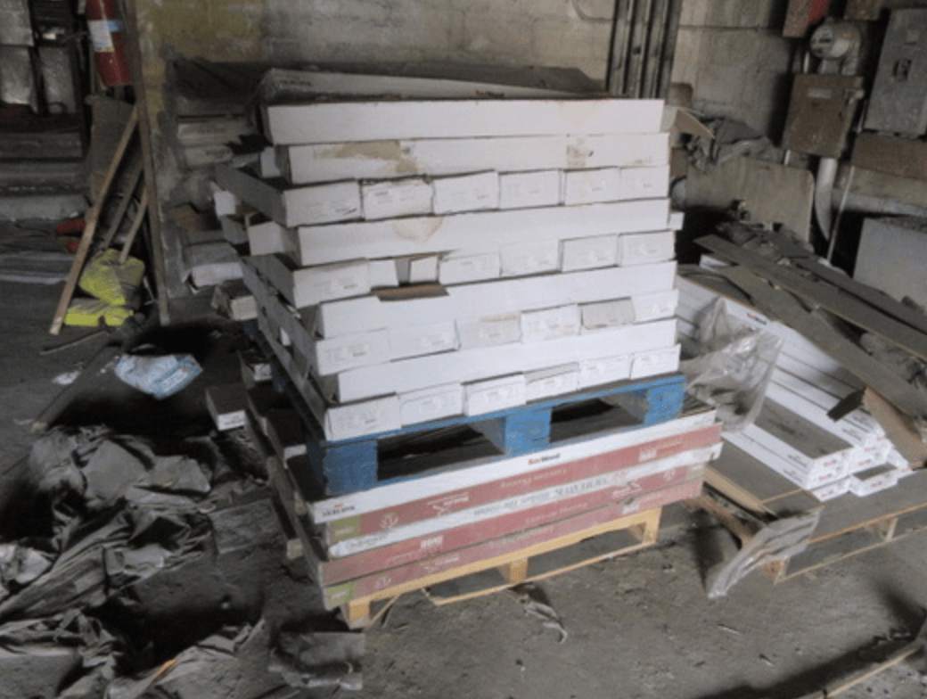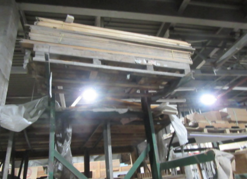 FEATURING LARGE QUANTITY CASES HARDWOOD FLOORING, LUMBER, MOULDING, METAL STUDS, SHEETS SLATWALL, PANELLING, SHEETROCK, BAGS CEMENT, MORTAR, GROUT, ROLLS PLASTIC WRAP, VINYL FLOOR TILE, GRID CEILING FRAMES & PANELS, STEEL FIRE DOORS & FRAMES, LARGE QUANTITY INTERIOR & EXTERIOR DOORS, STEEL & BLACK PIPE, INSULATION, GLASS BLOCKS, GALS. & 5 GAL. PAINT, INSULATION, 4 LARGE CRYSTAL CHANDELIERS, MORE...