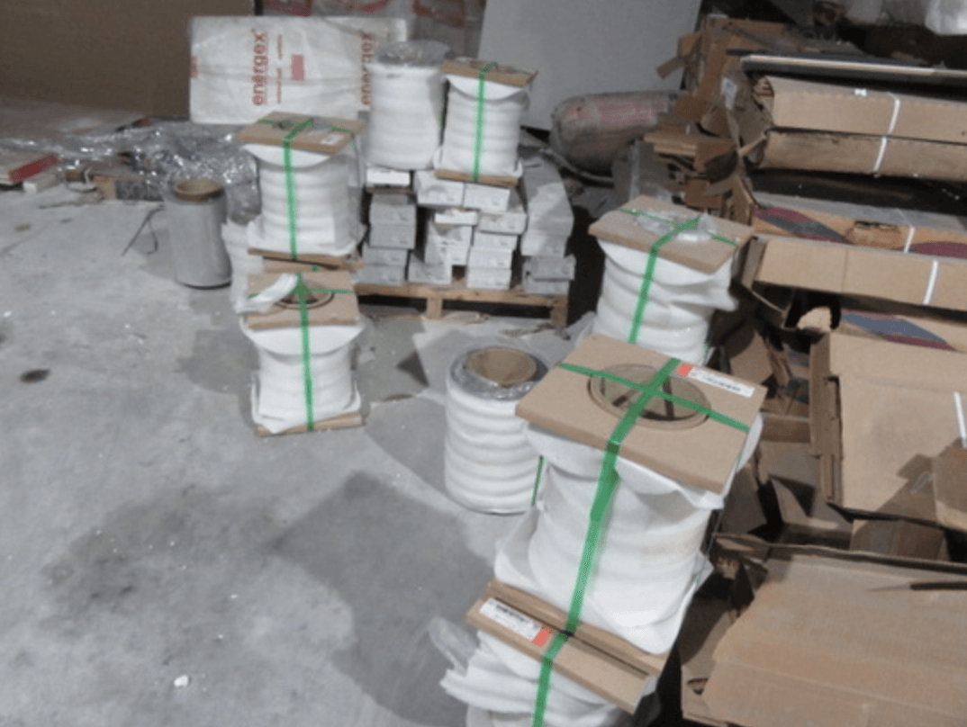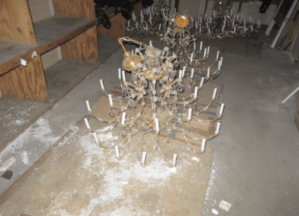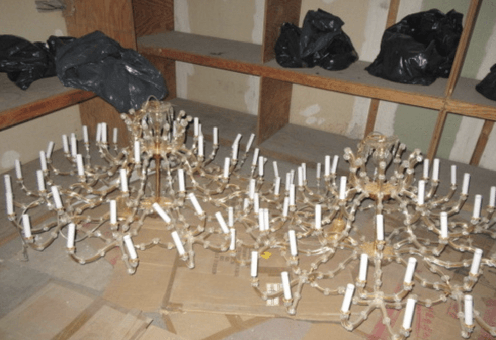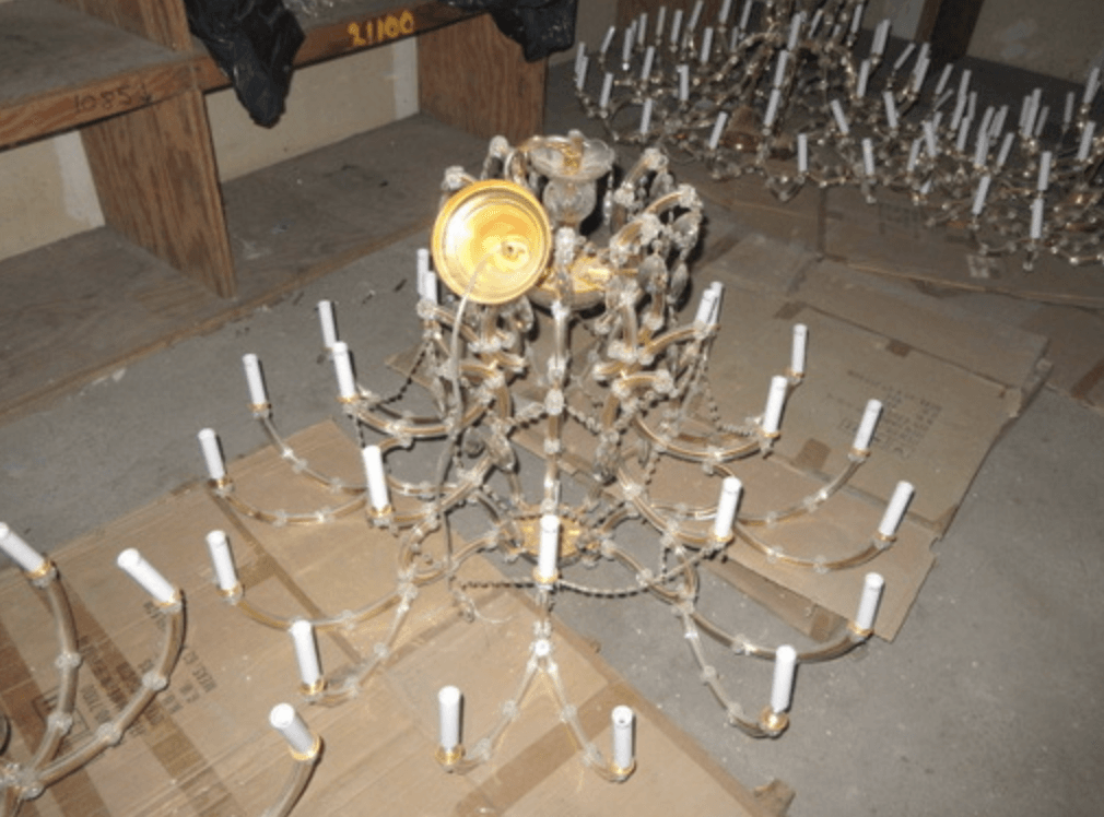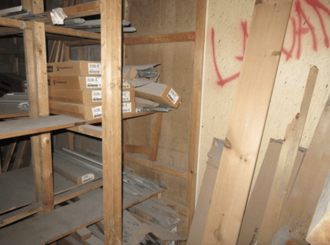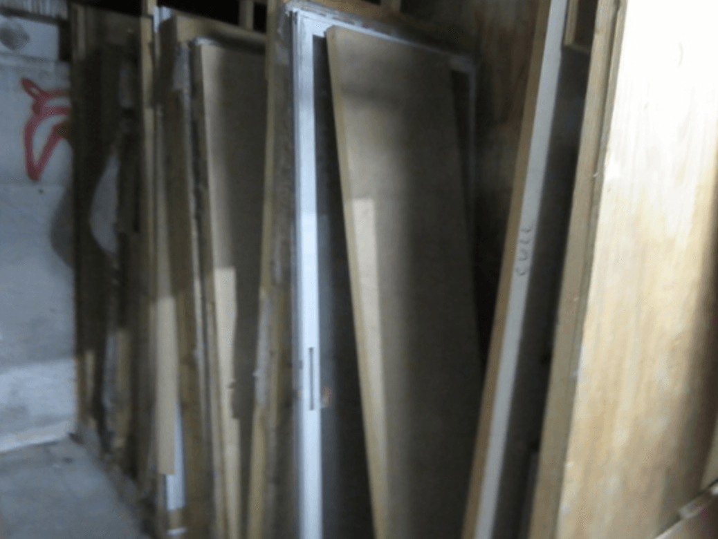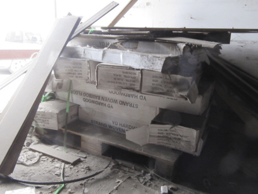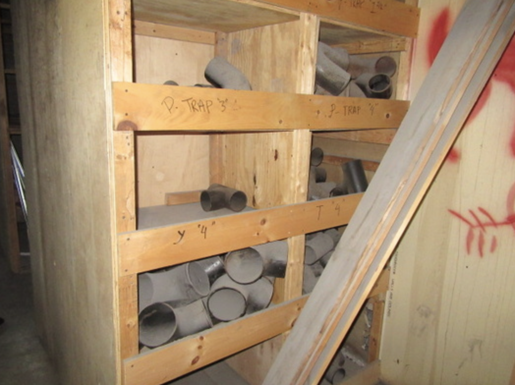 FEATURING LARGE QUANTITY CASES HARDWOOD FLOORING, LUMBER, MOULDING, METAL STUDS, SHEETS SLATWALL, PANELLING, SHEETROCK, BAGS CEMENT, MORTAR, GROUT, ROLLS PLASTIC WRAP, VINYL FLOOR TILE, GRID CEILING FRAMES & PANELS, STEEL FIRE DOORS & FRAMES, LARGE QUANTITY INTERIOR & EXTERIOR DOORS, STEEL & BLACK PIPE, INSULATION, GLASS BLOCKS, GALS. & 5 GAL. PAINT, INSULATION, 4 LARGE CRYSTAL CHANDELIERS, MORE...