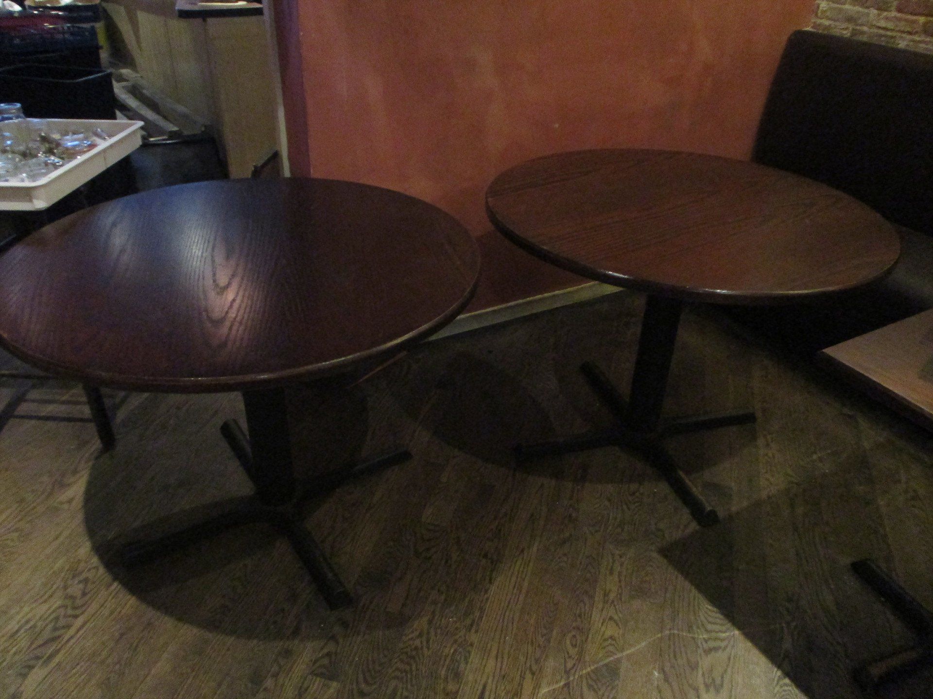 (2) HEAVY WOOD ROUND DINING TABLES,