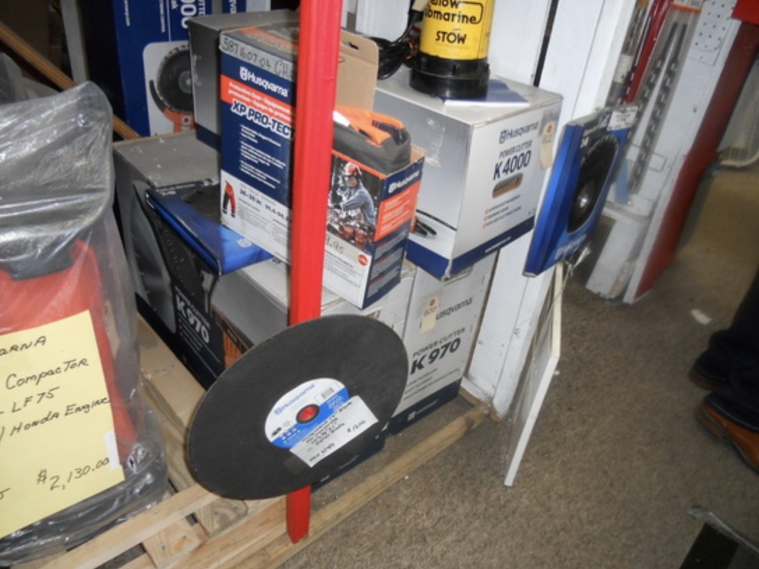 FEATURING ALL BRAND NEW HUSQVARNA PLATE COMPACTOR, HUSQVARNA DIAMOND CHAIN SAW, HUSQVARNA POWER CUTTERS, & WEED WACKERS, RIDGID KOLLMAN SEWER SNAKES, DR MOWERS, HEATSTAR HEATER, HONDA & ZOELLER PUMPS, GENERAC GENERATORS, WEN INVERTER GENERATORS, QNTY. BRIGGS & STRATTON ENGINES - NEW IN BOX, DIAMOND CORE BITS, BLADES, BITS, CUTWHEELS, RIDGID WRENCHES, CASES ENGINE OILS, SPARK PLUGS, TOOL ACCESSORIES, EXTENSION CORDS, MORE...
